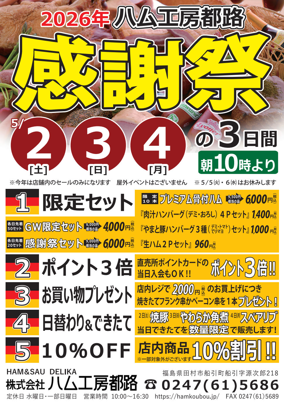 5/1〜4まで4日間、直売所にて「感謝祭」を開催いたします!